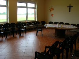 Ein Mehrzweckraum mit ca. 80 m² mit Tischen
